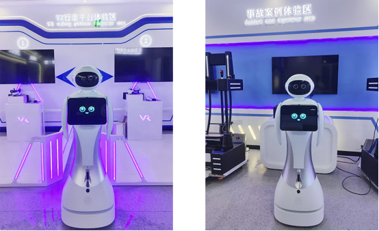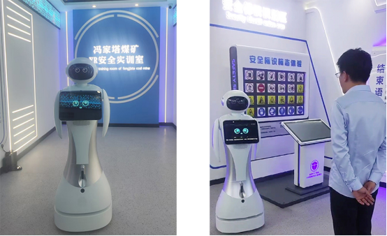 小鱼二代迎宾机器人的加入,显著优化了实训室的服务效能。以往人工登记、导览等重复性工作,如今由机器人高效完成,工作人员得以专注于安全培训的核心环节。此外,机器人还具备定时巡航讲解模式,在非教学时段自动循环播放安全知识要点,同时在电量不足的状态下,支持自动回充功能,确保全天候稳定运行。 小鱼二代迎宾机器人可自主规划参观路线并实时避障,在实训室内引导学员按序参观CPR人体急救体验区、事故案例体验区等核心功能区。通过人脸识别技术主动识别访客身份,结合预设数据库提供定制化安全规程讲解,包括设备操作规范、应急逃生流程等内容;支持自然语言交互功能,学员可随时提问关于安全作业标准、事故案例解析等问题,机器人通过云端数据库即时反馈专业解答。这些功能通过技术整合有效提升了实训室的教学互动性与知识传递效率,为煤矿安全培训提供了智能化解决方案。
